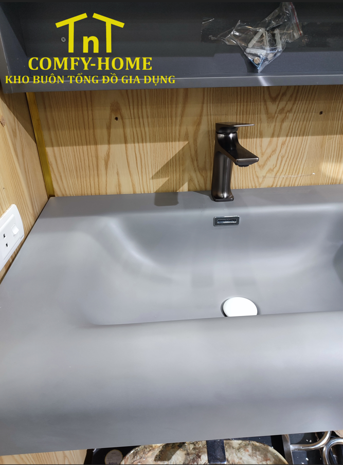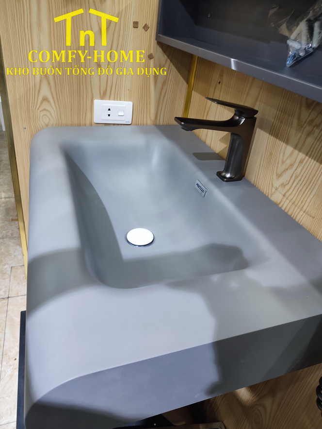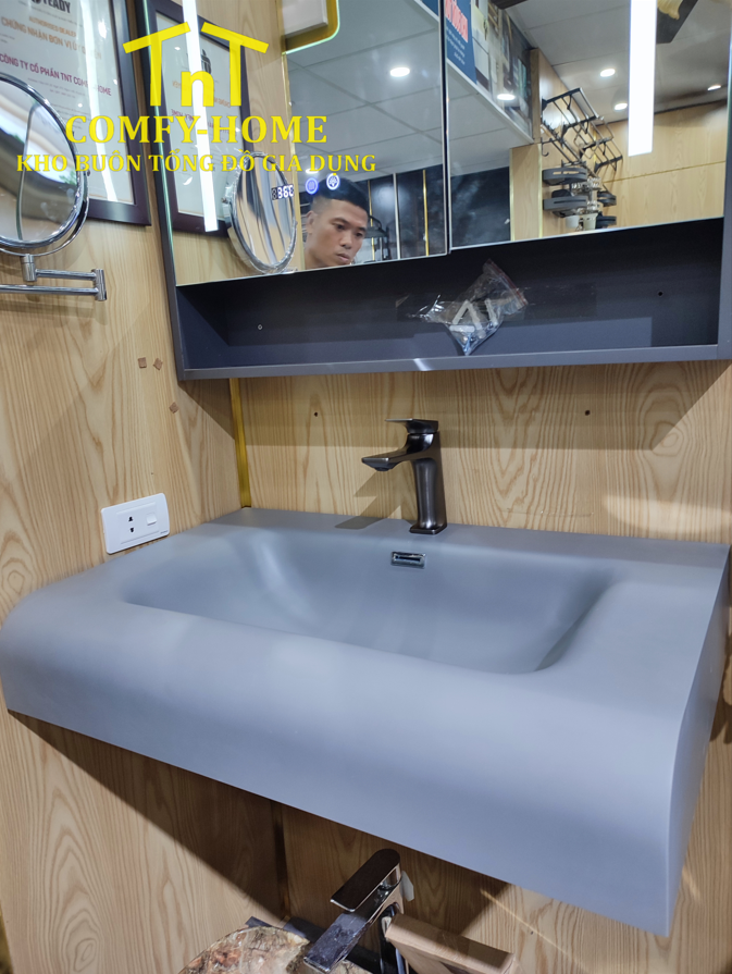 • Lavabo liền khối: Chất liệu đá nhân tạo/solid surface cao cấp, bề mặt mịn, chống bám bẩn, dễ vệ sinh.